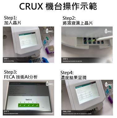 CRUX機台採用FECA量測技術,可以協助客戶做不同化學藥品的即時檢測